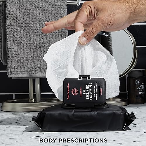 Extra-Large Size: Our Body Prescriptions Body & Face Wipes are designed to be extra-large, great for a full-body cleanse. Ideal for gym-goers, travelers, or anyone on-the-go needing a quick and effective cleanup.