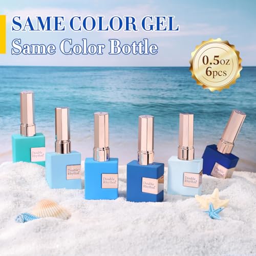 Double Rhythm 6 Pcs 15 ML Gel Polish Set Same Color Same Bottle Soak Off Gel Polish Kit Nail Art Manicure Salon DIY at Home for Women (Light Blue Dark Navy Teal-T6-14)