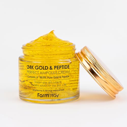FARMSTAY 24K Gold and Peptide Perfect Ampoule Cream – 24K Gold Skin Care – Anti-Aging Skin Cream for Fine Lines and Wrinkles – Peptide Cream – 2.7 oz