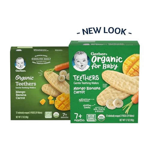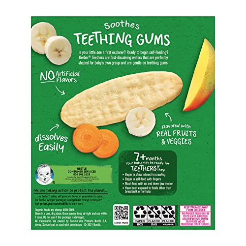 Gerber Snacks for Baby Teethers, Organic Gentle Teething Wafers, Mango Banana Carrot, 1.7 Ounce, 12 Count Box