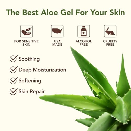 Green Leaf Naturals Amazing Aloe Vera Gel – Freshly Cut, 100% Pure Aloe, Premium Quality, Vegan, Unscented – Natural Sunburn Relief, After Shave, Skin, Face & Hair Care 8oz