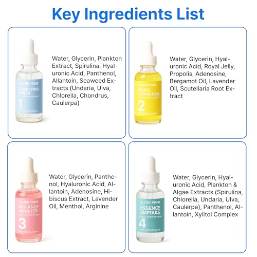 Comprehensive Care System: Helps address the appearance of wrinkles, supports skin elasticity, and enhances hydration with essence toner, lifting mask, vitamin booster, and clarifying ampoule.
