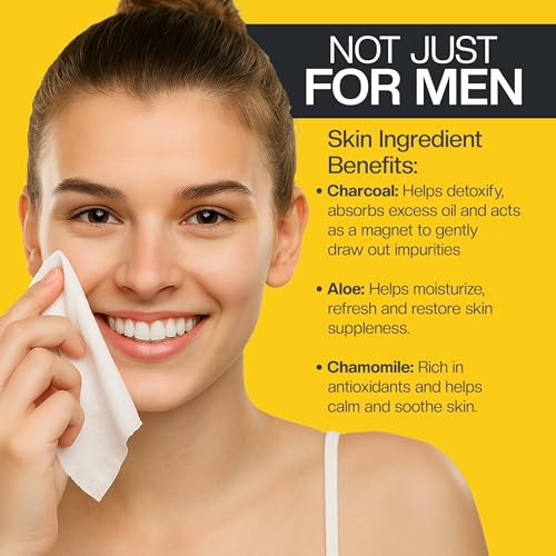 Men’s Charcoal Face + Body Cleansing Wipes – 4 Pack (120ct)
