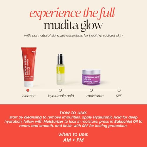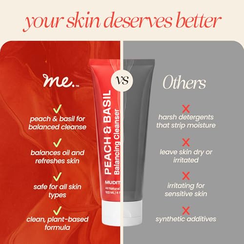 Mudita Earth Vitamin C Cleanser – 4 fl oz | Peach & Basil Balancing Face Wash | Gentle Sulfate-Free Cleanser for Sensitive, Oily & Acne-Prone Skin, Lactic Acid Polish