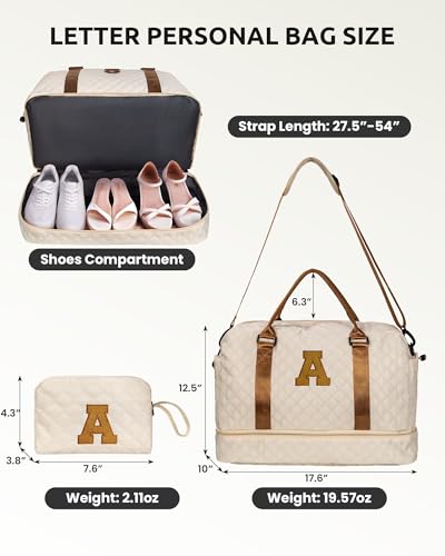 【Initial Weekender Bag&Cosmetic Bag】Our weekend bag stands out from the market with personalized letters, allowing you to choose the initial of your name or give it as a thoughtful gift to others. Our initial travel bag comes with a cosmetic bag for storing your makeup/toiletries.