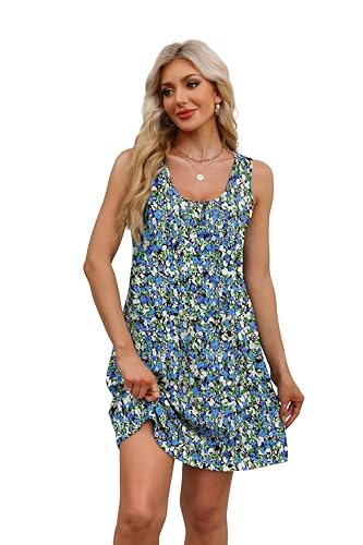 WEESO Womens Summer Dresses Loose U Neck Sleeveless Sundresses Dress with Pockets