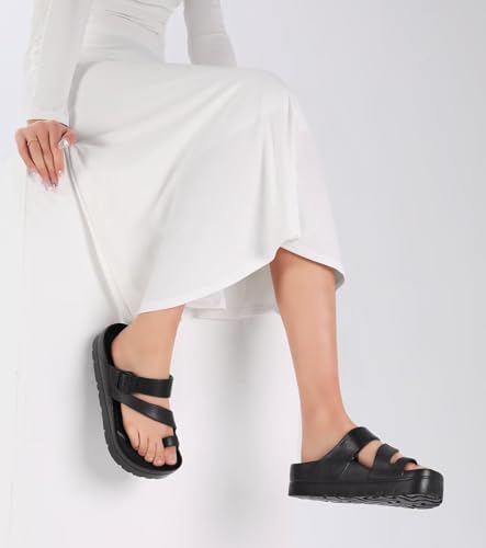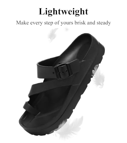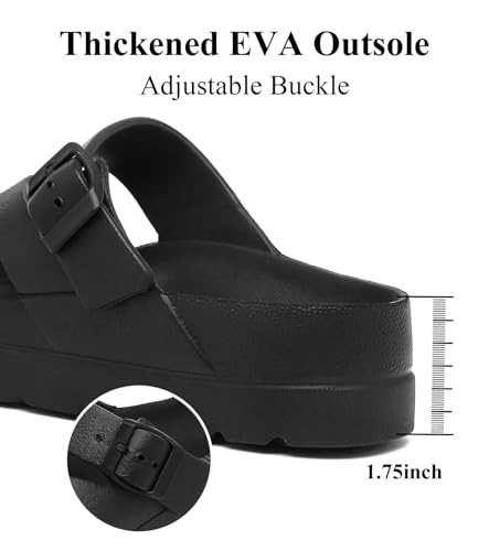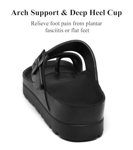 Womens Platform Sandals with Arch Support, Adjustable Buckle Beach Sandal Woman Comfort Lightweight Ultra Cushion EVA Slides